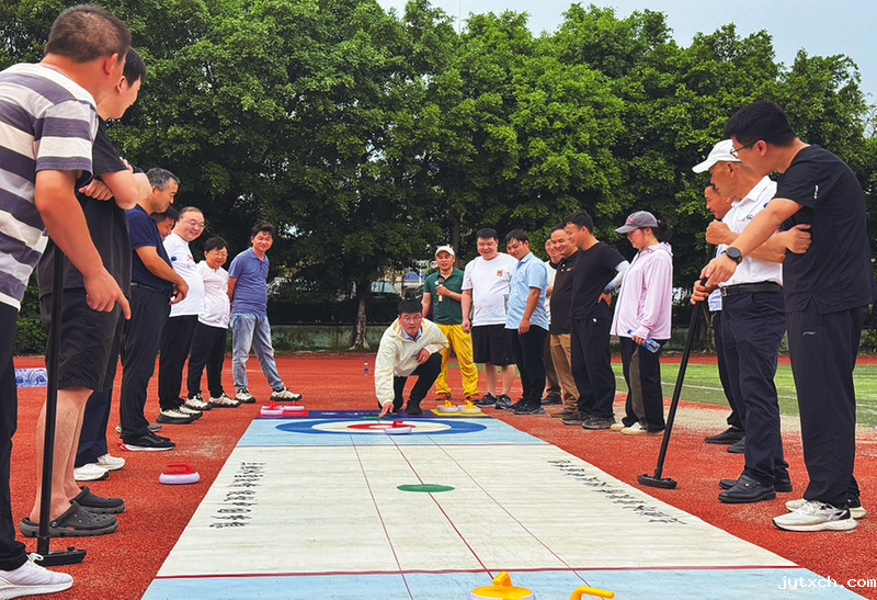 5月4日,中铁十局城轨公司广州地铁8号线项目部组织全体员工前往户外团建基地,开展“弘扬劳动精神,彰显青春风采”拓展活动。图为“旱地冰壶”比赛。 赵守斌 程挚 摄影报道