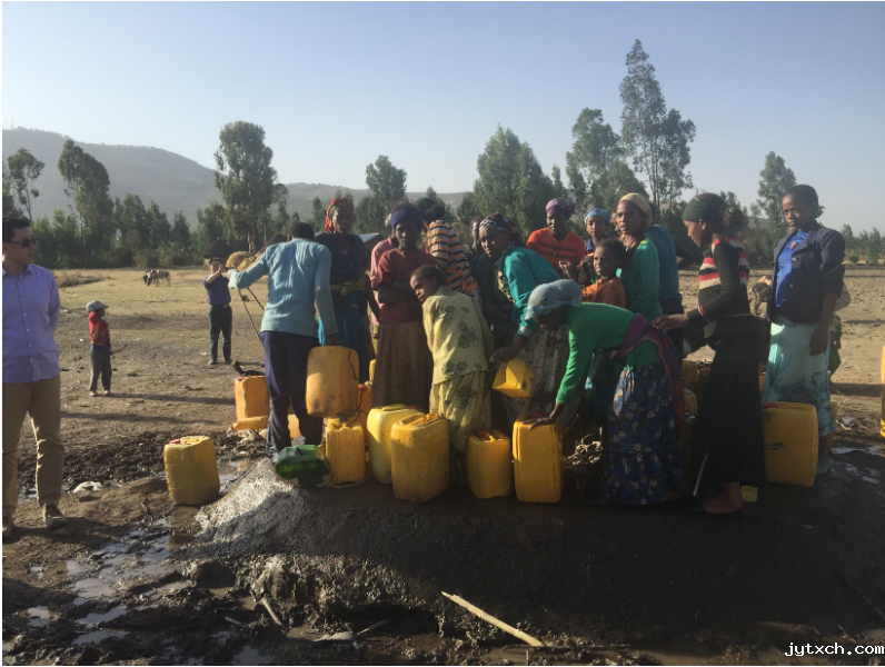Most areas in Ethiopia are located in tropical savanna climate. There is very little rainfall in dry season for more than half a year. Abundant water exists underground so utilization rate is very low. In dry season, the villagers have difficulties in getting water. They have to travel for several kilometers away to take water from small ponds formed after rainy season. With pollution and sharing by humans and animals, the water quality is not satisfactory. Taking consideration of the water intake demand of the villagers during construction, the project office helped them to drill wells and taught well-drilling techniques.